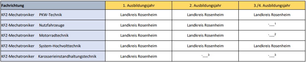 3 Ab dem zweiten Ausbildungsjahr erfolgt die Beschulung an der Städt. Berufsschule für Fahrzeugtechnik München
