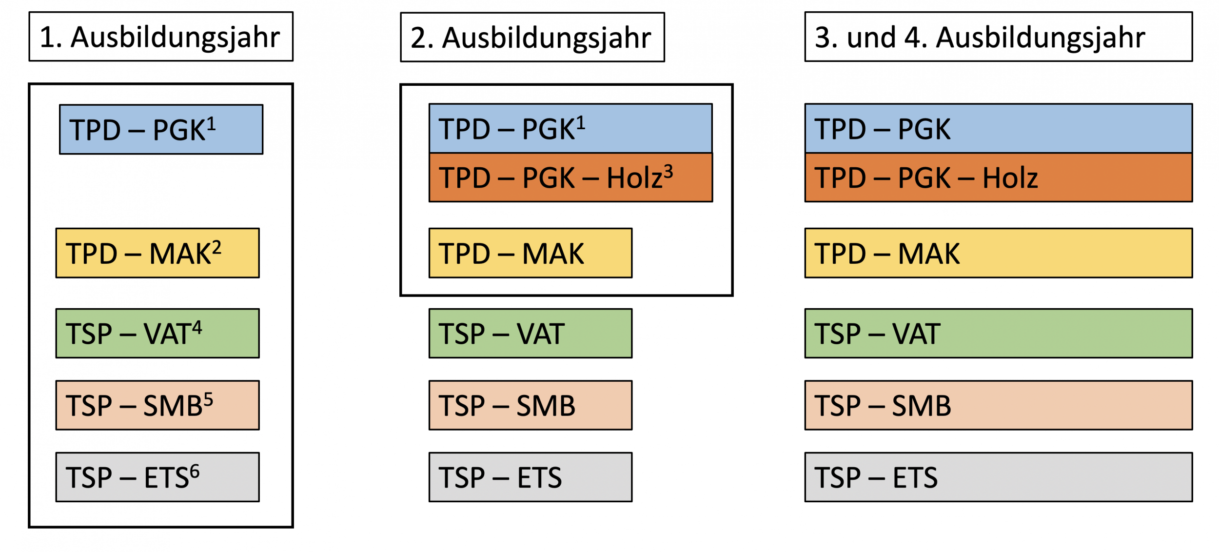 Im ersten Ausbildungsjahr erfolgt die Ausbildung gemeinsam (Grundbildung)